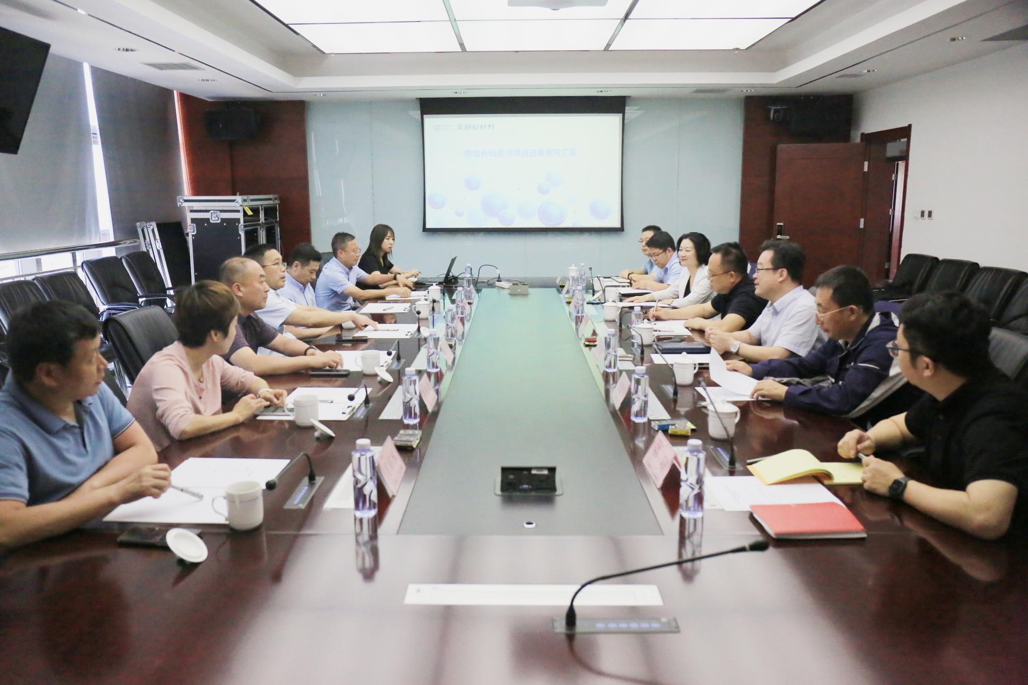 近日,陜西省國資委黨委委員、副主任李凱、汪亮帶領(lǐng)創(chuàng)新工作處、財務(wù)監(jiān)督處等相關(guān)人員到天瑞硅材料調(diào)研指導(dǎo)工作。陜西有色金屬集團(tuán)黨委委員、副總經(jīng)理王天雄和戰(zhàn)略發(fā)展改革部相關(guān)人員,天瑞硅材料黨委副書記、總經(jīng)理蘇旭盛等陪同調(diào)研。