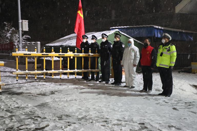 風雪中堅守保家園。2月5日晚,金堆礦區(qū)氣溫驟降,雪花飄飄,寒風襲人。金堆礦區(qū)抗擊新型冠狀肺炎的六個檢查站、48個勸導點的同志不畏嚴寒不畏風雪,依然堅守在自己的崗位上。